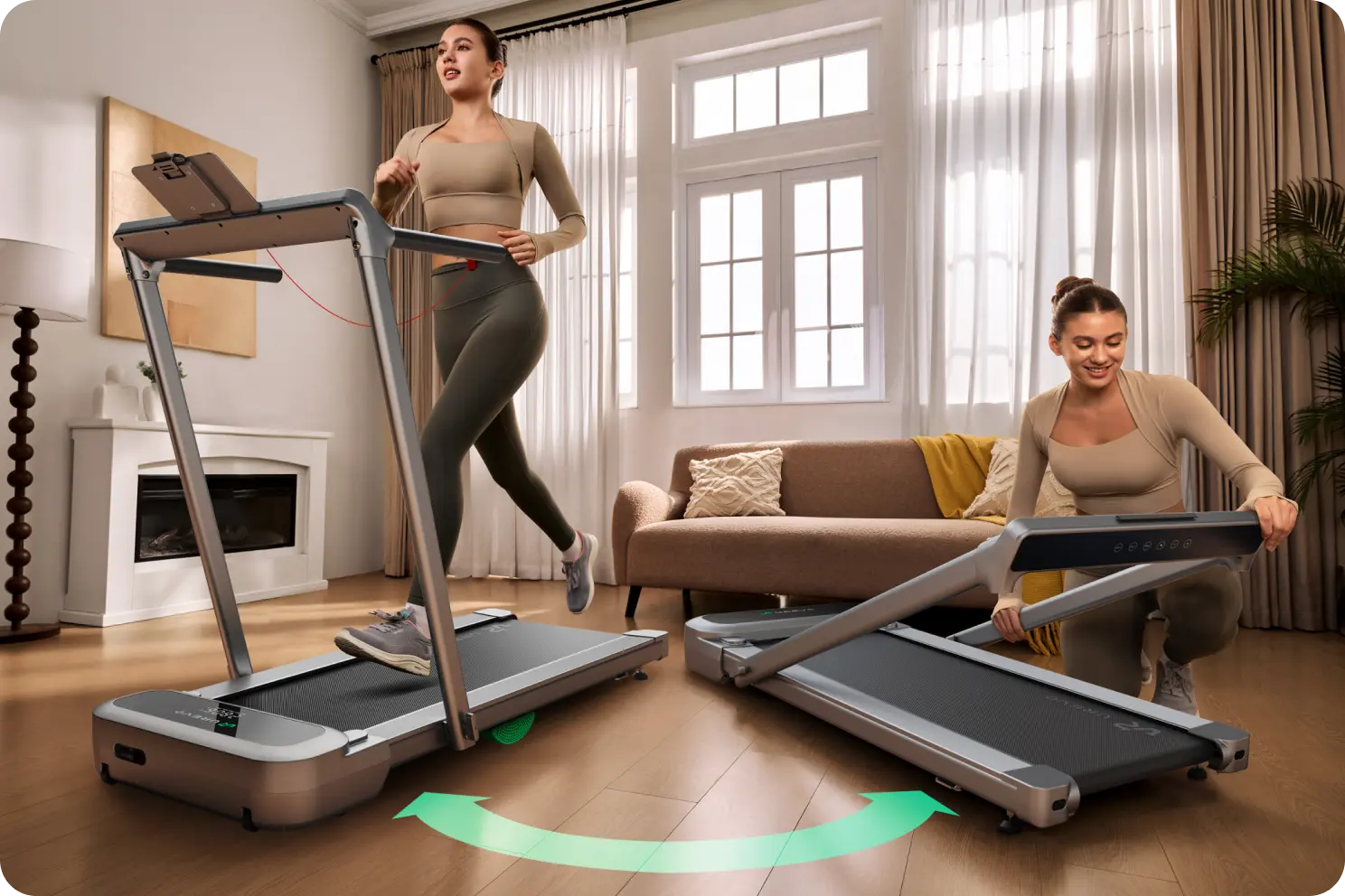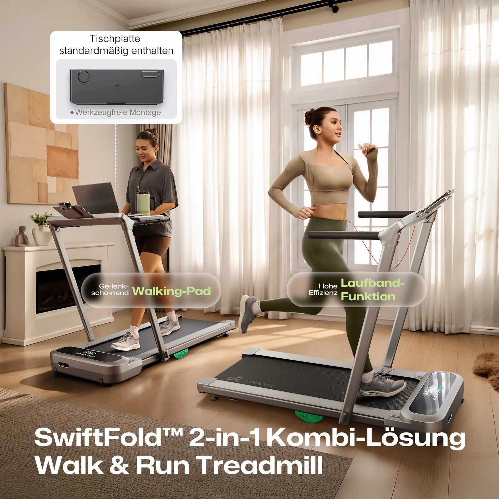 - SwiftFold™ 2-i-1 Walk & Run löpband: Välj gångläge för ditt morgonträning (1-6 km/h) för att börja dagen med energi, eller löpläge (upp till 13,4 km/h) för effektiv fettförbränning. Perfekt för hela familjen – mångsidig och kostnadsbesparande. Även perfekt för hemmakontoret.