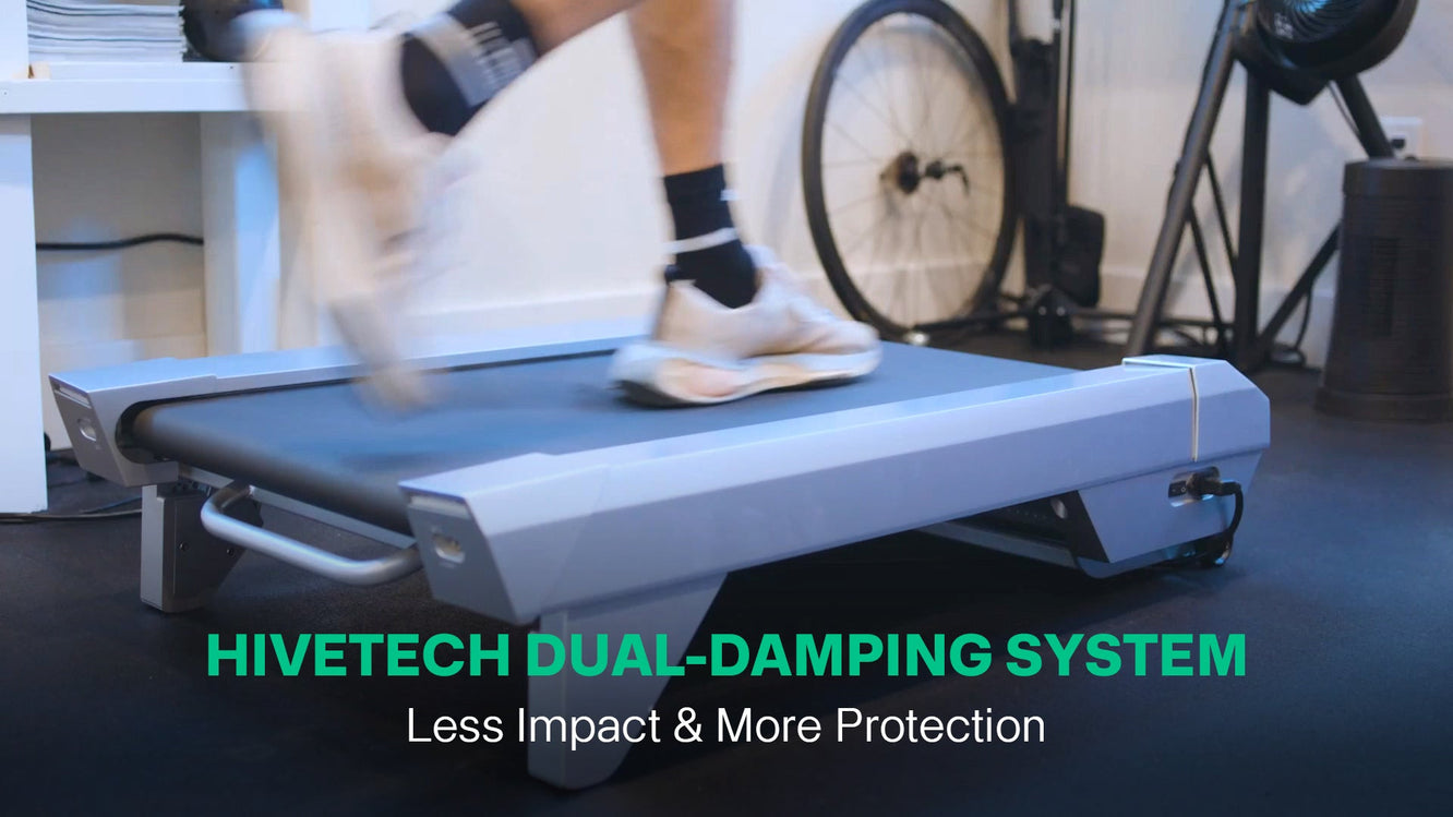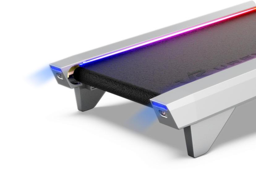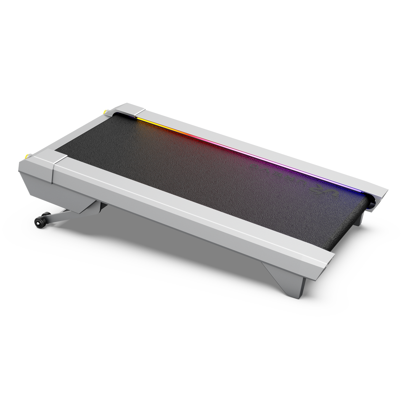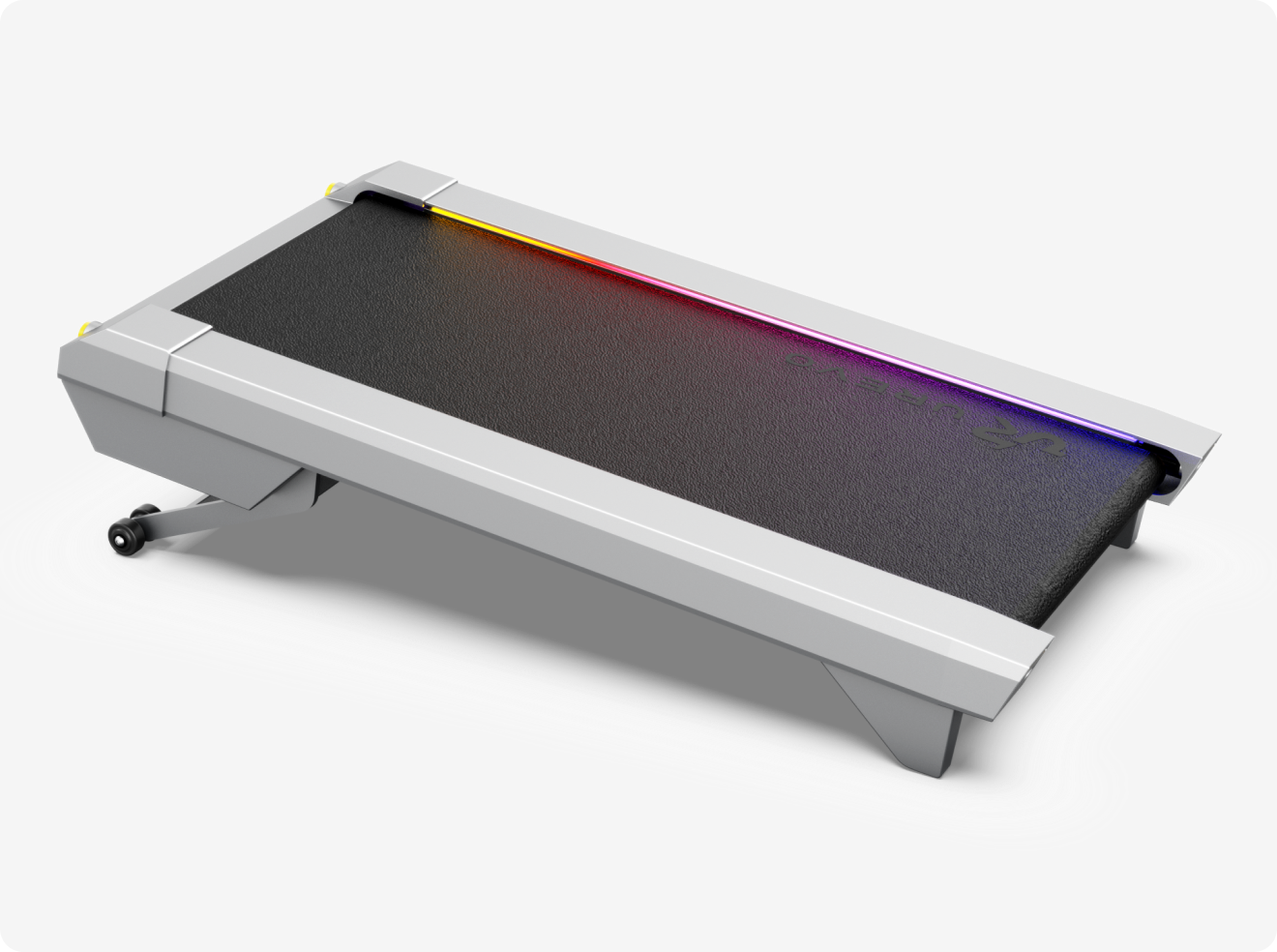 Öppen frontdesign för arbetsmiljöer: Gå under telefonsamtal, sträcka på dig mellan e-postmeddelanden - på ditt ultratunna löpband som försvinner under vilket skrivbord som helst. Industriell lägsta profil med 100 cm säker löpyta för naturlig rörelse i arbetsmiljön.