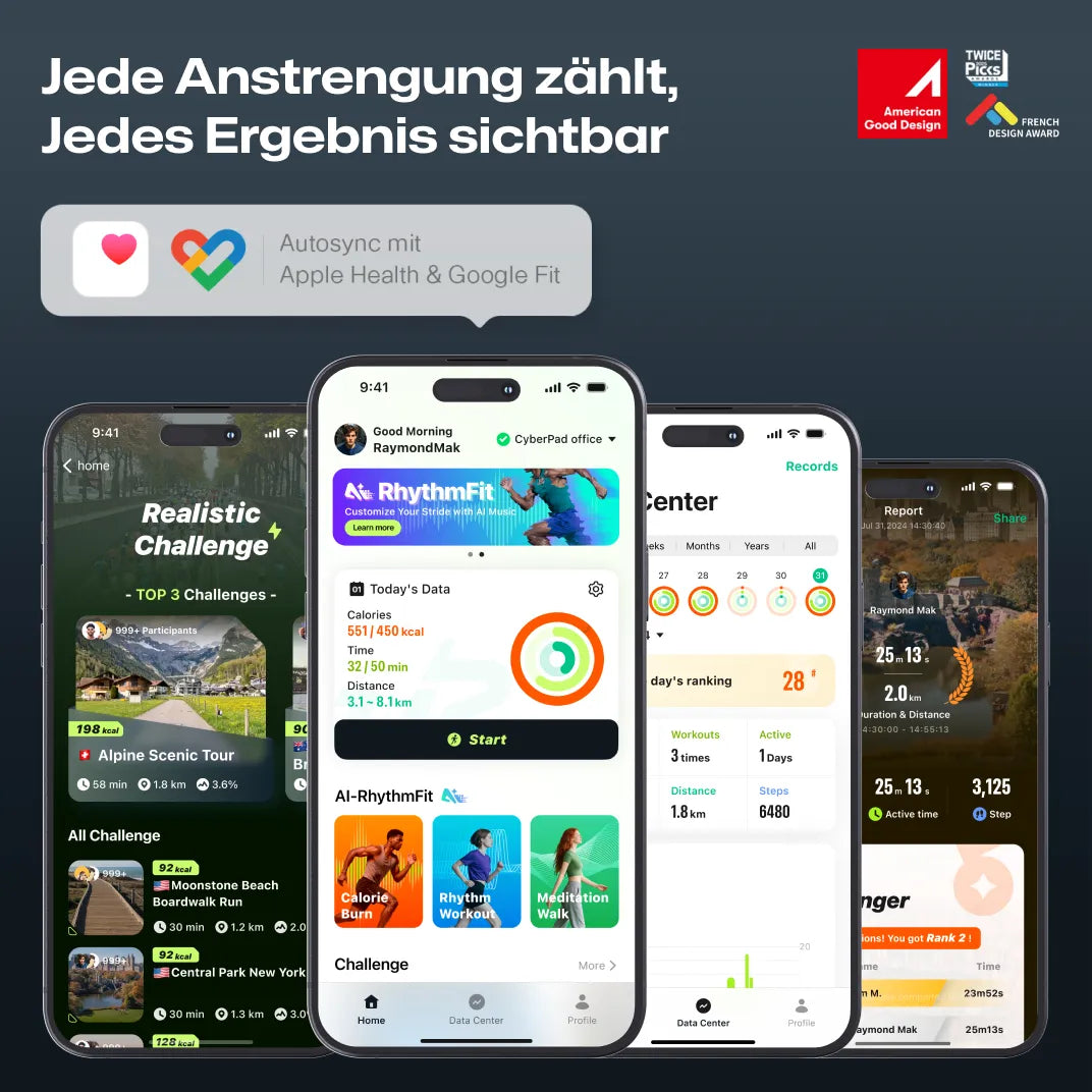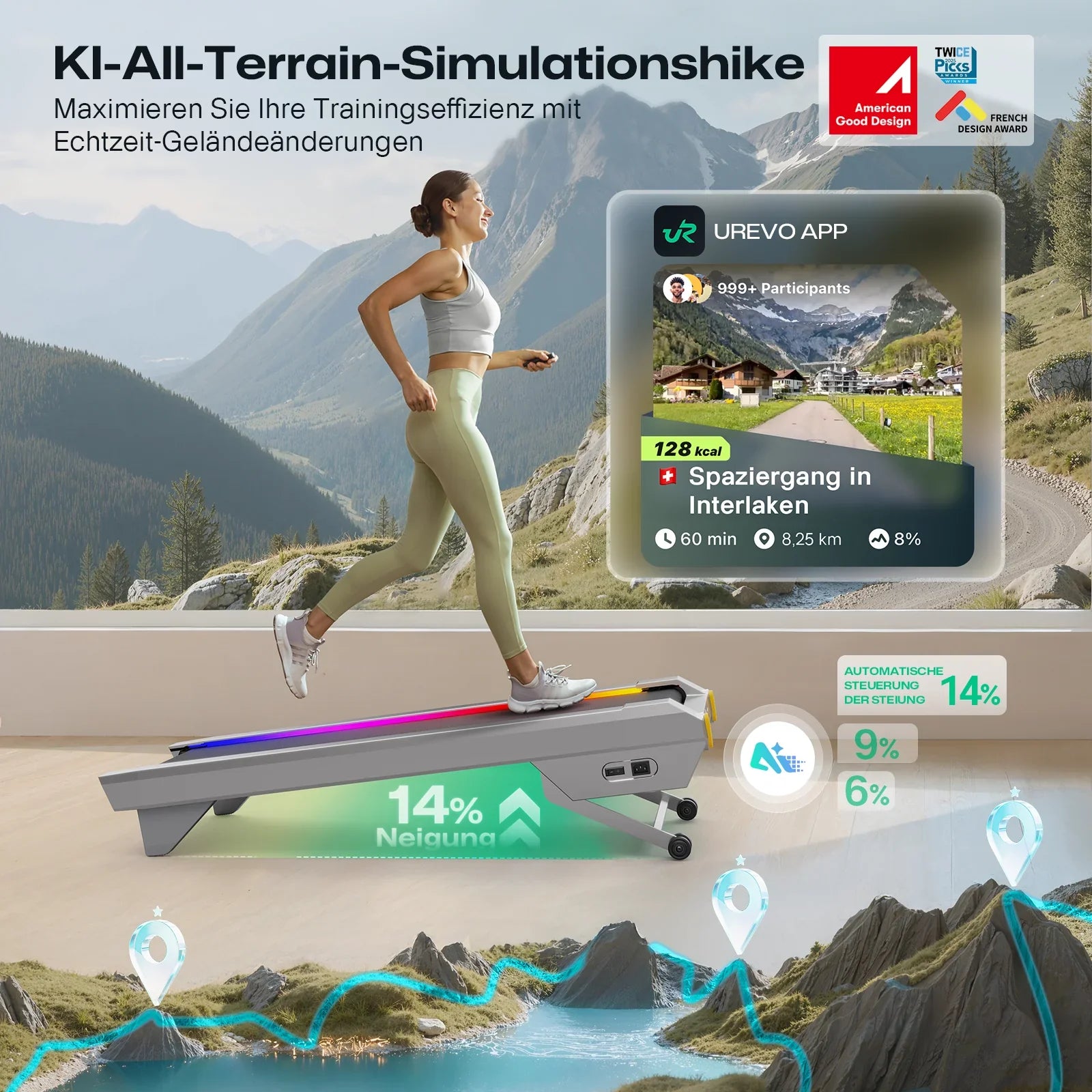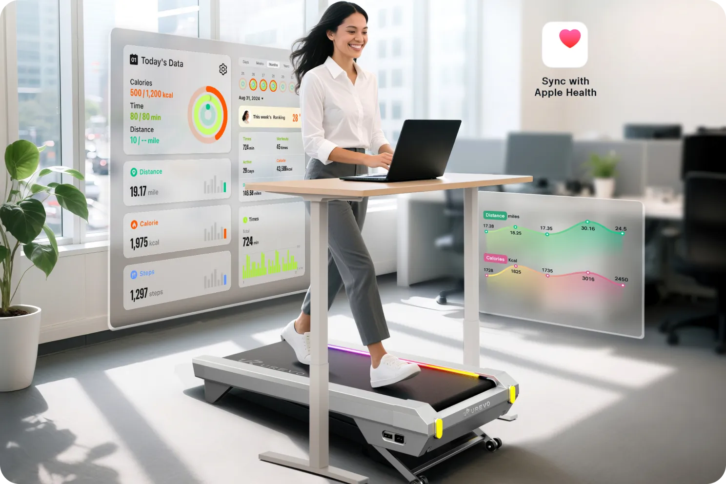 UREVO hälsocenter: Övervaka realtidsdata (tid/distans/kalorier) och spåra långsiktiga trender (veckovis/månadsvis/årlig) för omfattande träningsanalys.