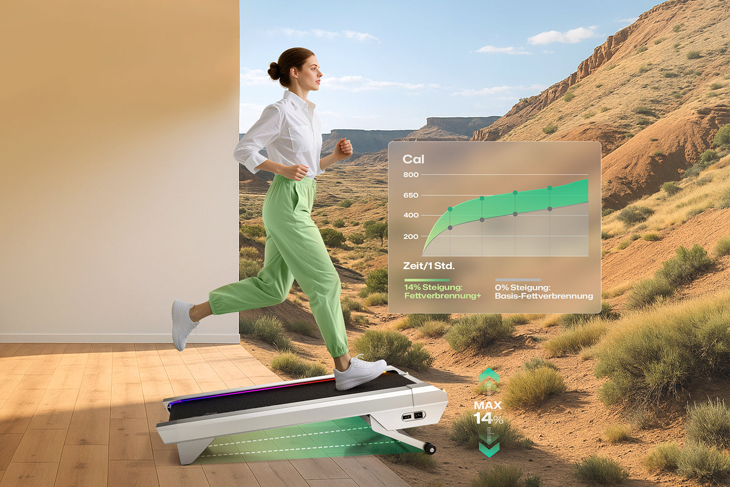 Dynamisk 14 % maximal lutning: MegaLift-tekniken tillåter 14 % lutning – ökar kaloriförbränningen med 190 % för snabbare träningsresultat.