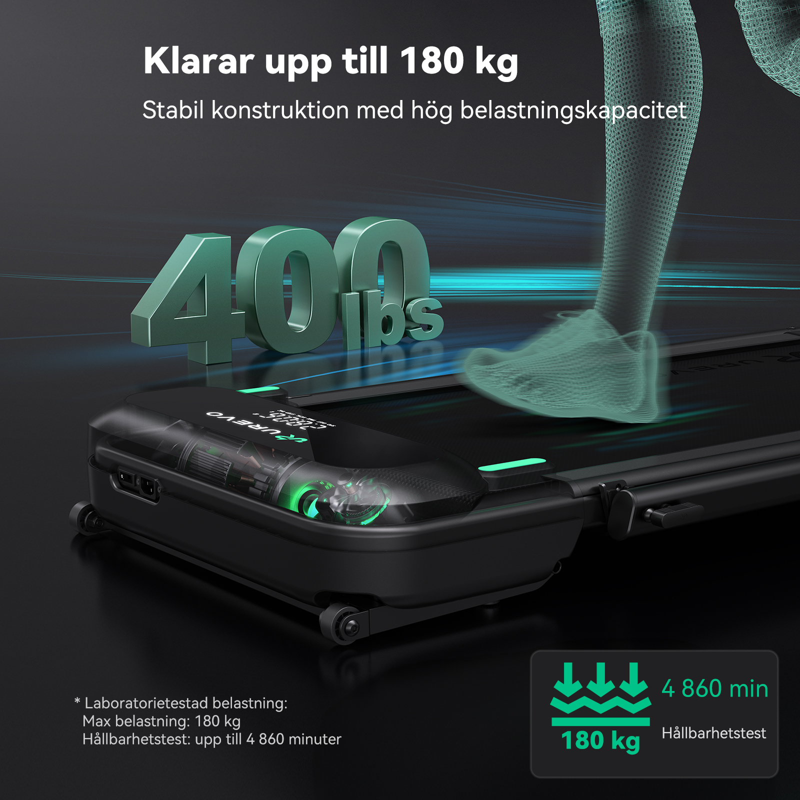 *Laboratorietestade data: 181 kg maximal belastning vid normal drift med normal hastighet, 136 kg vid test med maximal hastighet (4 860 minuters hållbarhetstest).