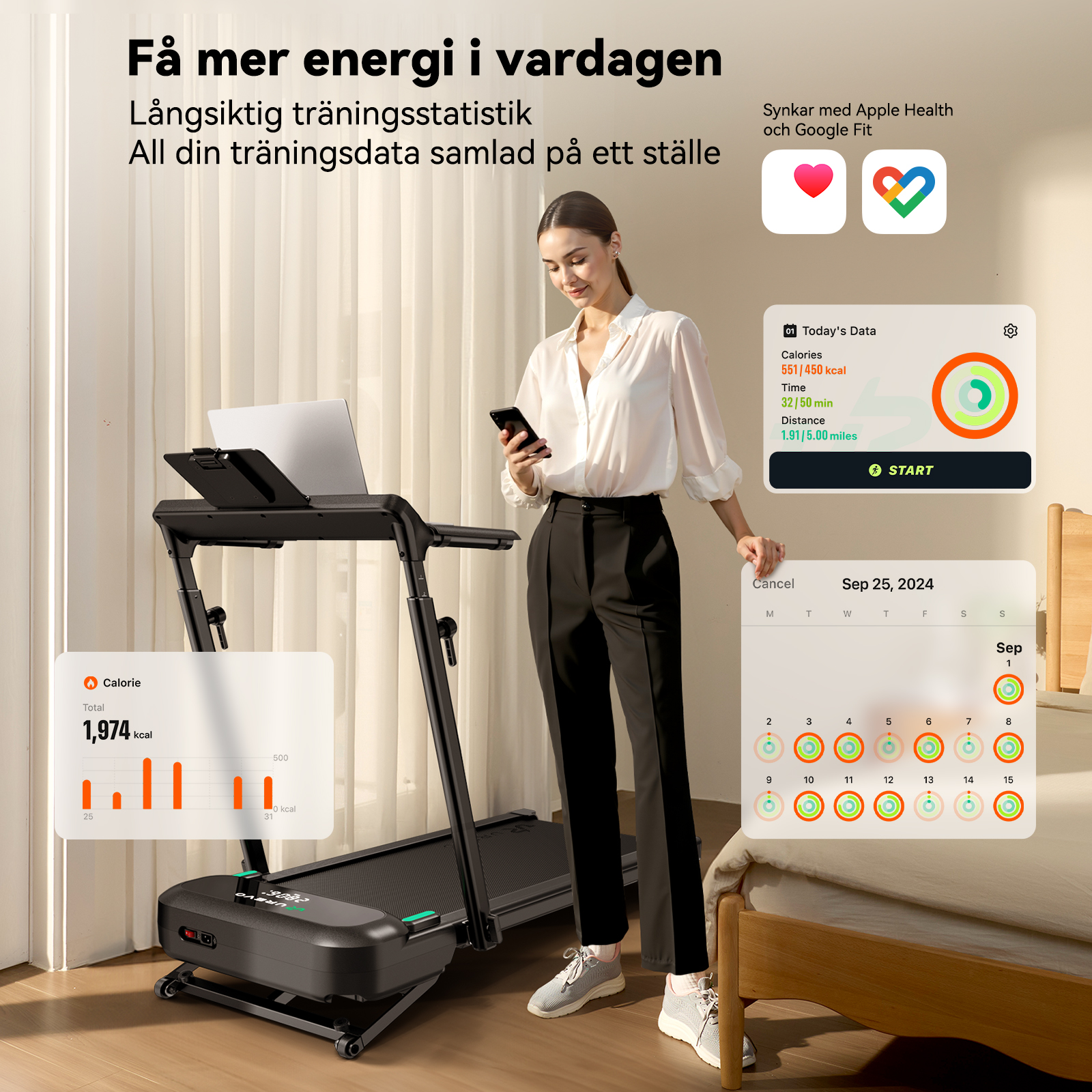 Träna smartare och uppnå bättre resultat: Med omfattande innehåll i UREVO-appen kan du alltid följa din träningsdata, hantera din hälsa smartare och utveckla mer hållbara träningsvanor.
