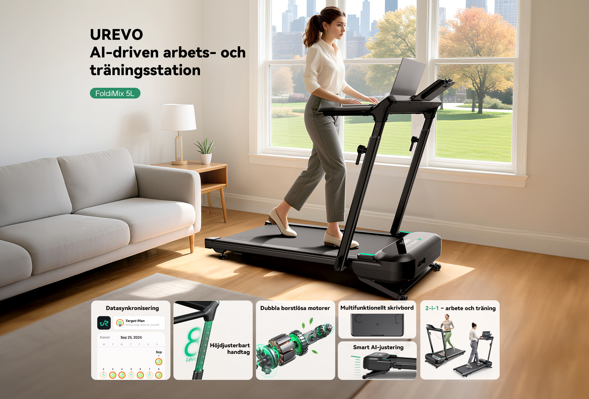 UREVO FoldiMix 5L Hopfällbart löpband